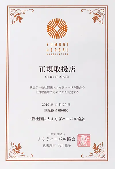 あたためコンシェルジュ®の試験に合格された方が運営・所属されるサロンは、正規代理店として、認定証を進呈いたします。よもぎハーバル協会の正規代理店は質の高い正統派のよもぎ蒸しのサービスを提供するサロンとして、お客様から一段高い信頼を得ることができます。
